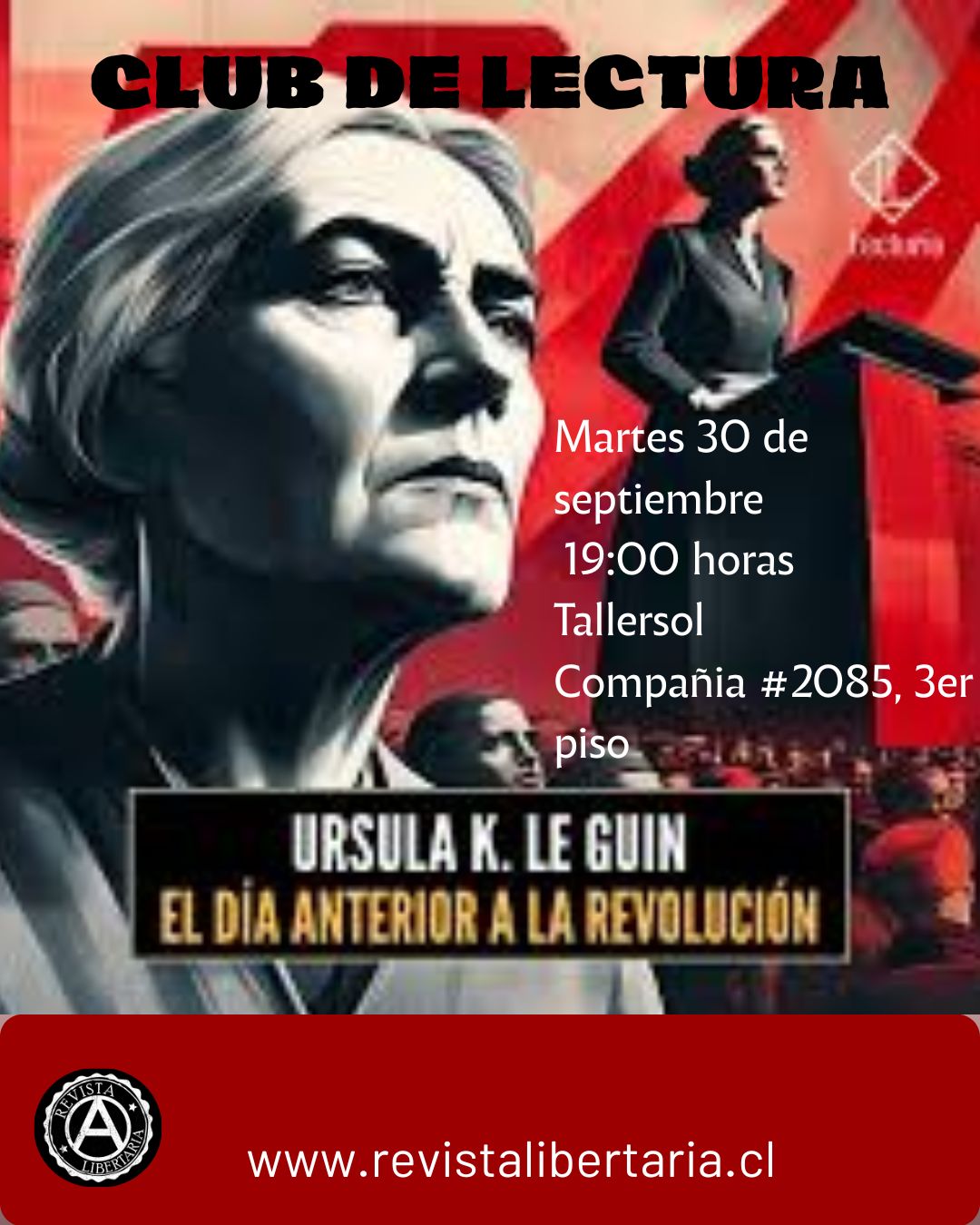 Martes 30 de septiembre a las 19:00 horas en Tallersol, ubicada en calle Compañía de Jesús 2085, 3° Piso, frente a Plaza Brasil, Santiago de Chile. |